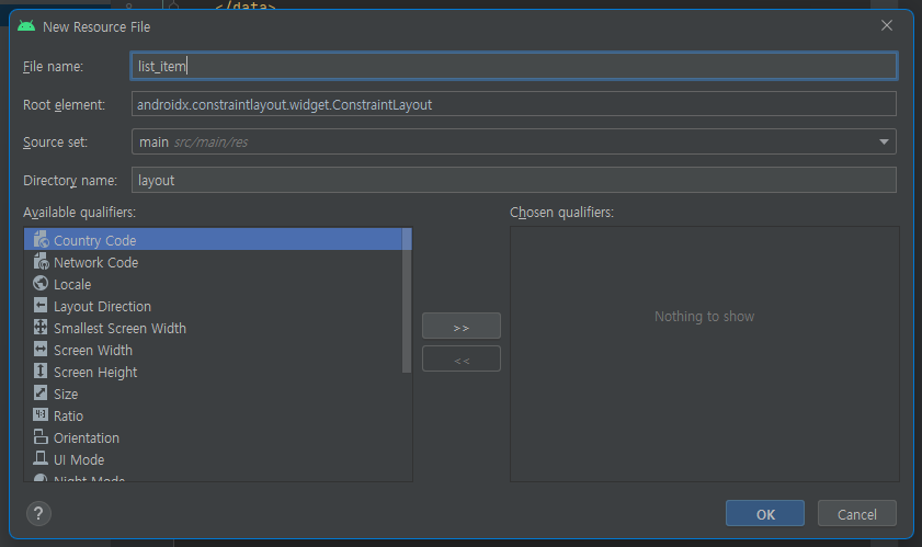 RecyclerView에 표시될 아이템의 레이아웃을 만들어줍시다.