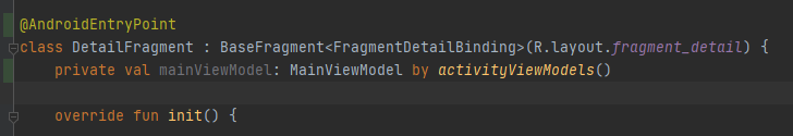 메인 액티비티의 ViewModel을 받을 Fragment에서는 by activityViewModels()로 부모 액티비티에서 생성된 뷰 모델을 받아오면 됩니다.