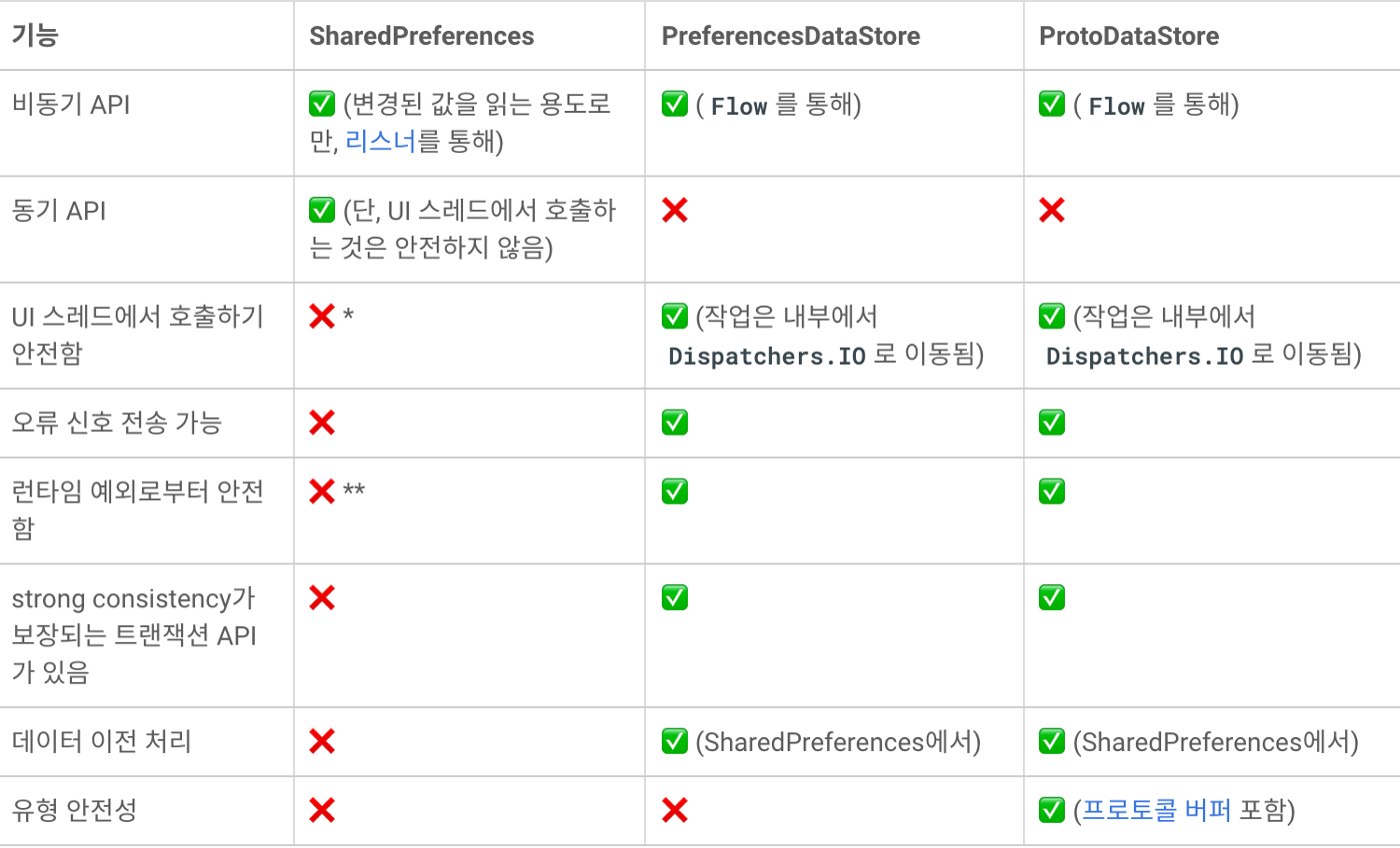DataStore는 SharedPreference를 대체하기 위해 구현된 라이브러리로, PreferenceDataStore와 ProtoDataStore 두 가지 종류가 있습니다. 이 글에서는 Key-Value 형태로 데이터를 저장하는 PreferenceDataStore를 사용해보도록 하겠습니다.