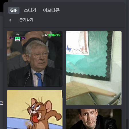 디스코드에는 GIF(움짤)을 골라 보낼 수 있는 화면이 있습니다.