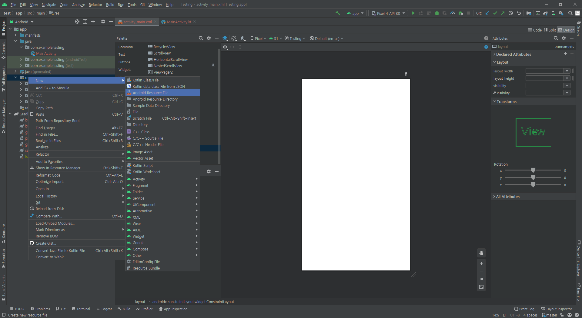 res 폴더 오른쪽 클릭 → New → Android Resource File을 선택해준다.