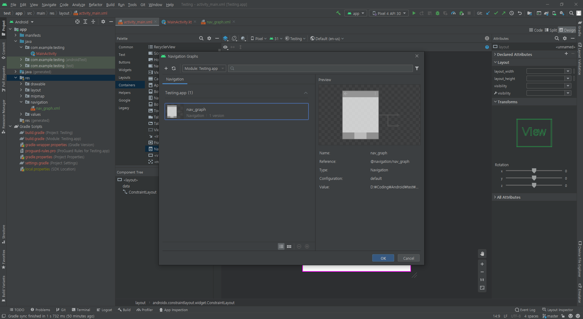아까 만든 nav_graph가 표시되는데 선택하고 OK를 눌러준다.