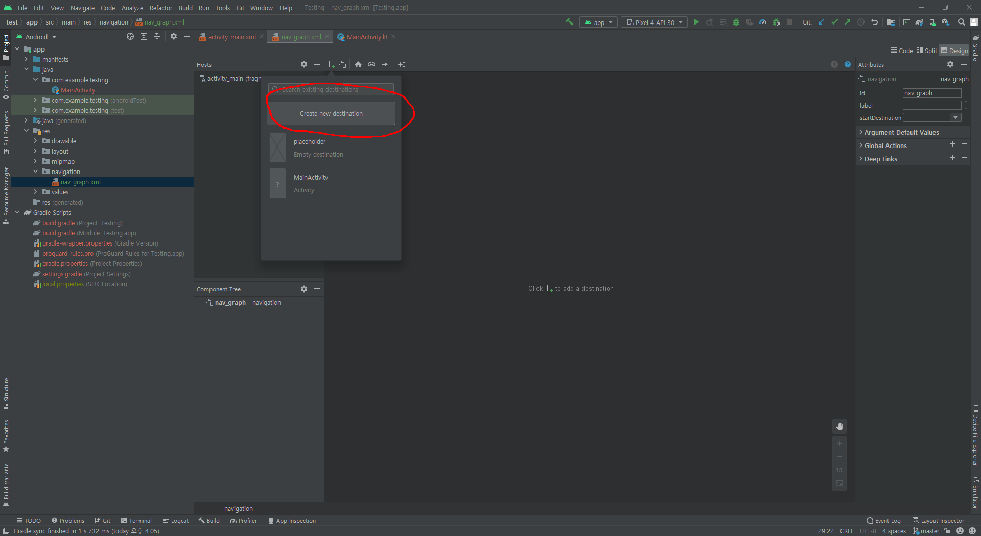 3. Navigation Destinations 추가